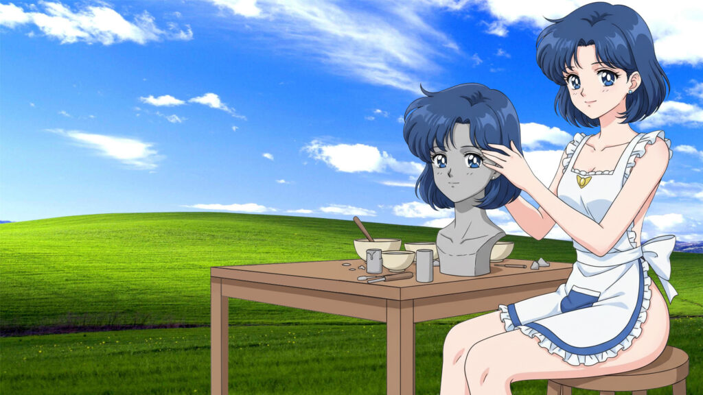 Jedenfalls hat sich Ami schnell mal eine Schürze angezogen (und den Rest weggelassen) und ihren eigenen Kopf sehr wirklichkeitsgetreu nachmodelliert.